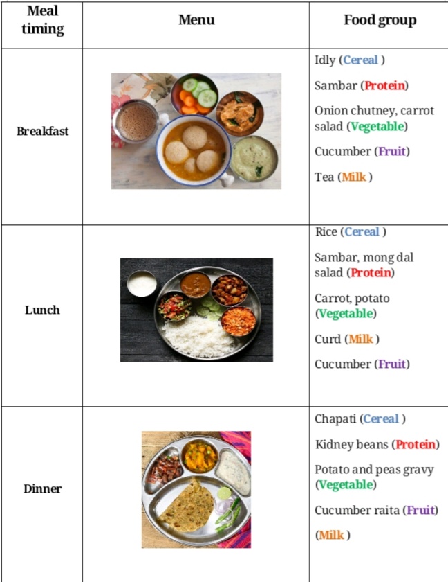 Sample diet chat for a balanced meal