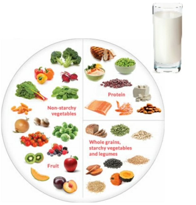To live a healthy life it is important to eat foods from all the 5 groups. Fruits and vegetables should be 50% of our plate and among the remaining 50% 25% should be from cereals and 25% should be from protein. 10 servings of fruits and vegetables has to be included everyday. Vegetables from various categories and seasonal fruit has to be included to get multiple vitamins and minerals. 2-3 servings of milk and milk products has to taken everyday.